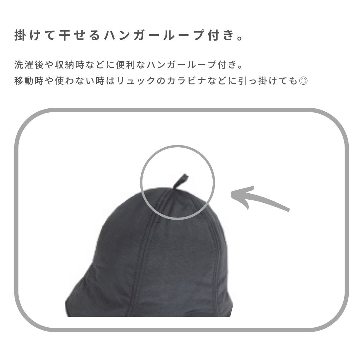 通常帽子の内側についているスベリを敢えてつけていないデザインのため、深くかぶって頭皮や髪、耳をしっかり保護することが可能に。